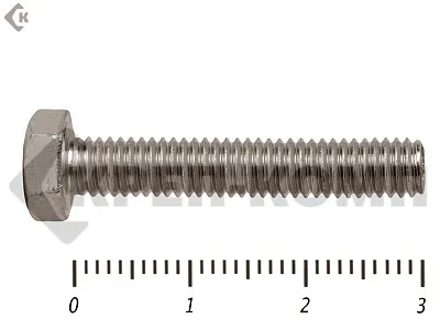 Болт DIN 933 с шестигранной головкой и полной резьбой, выполнены из нержавающей стали. Такие болты могут применяться как для внутренних работ, так и для внешних, в агрессивных средах. Диаметр резьбы болтов от М3 до М64, длина болтов от 12 до 950 мм. Болты DIN 933 применяются для соединения и крепления деталей и конструкций в строительстве и машиностроении.